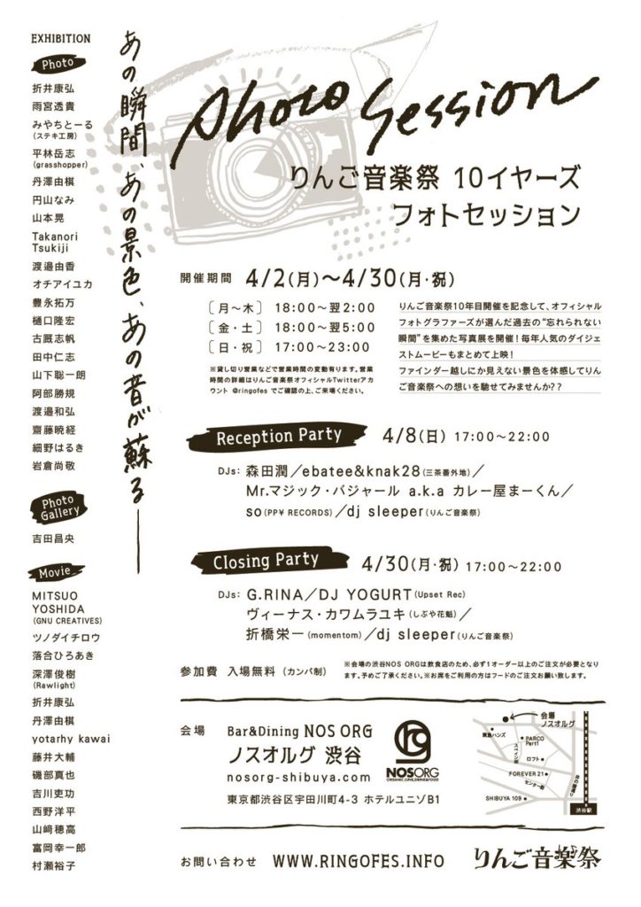 ・4/30(月) りんご音楽祭写真展closing party@ 渋谷NOS ORG【DJ】